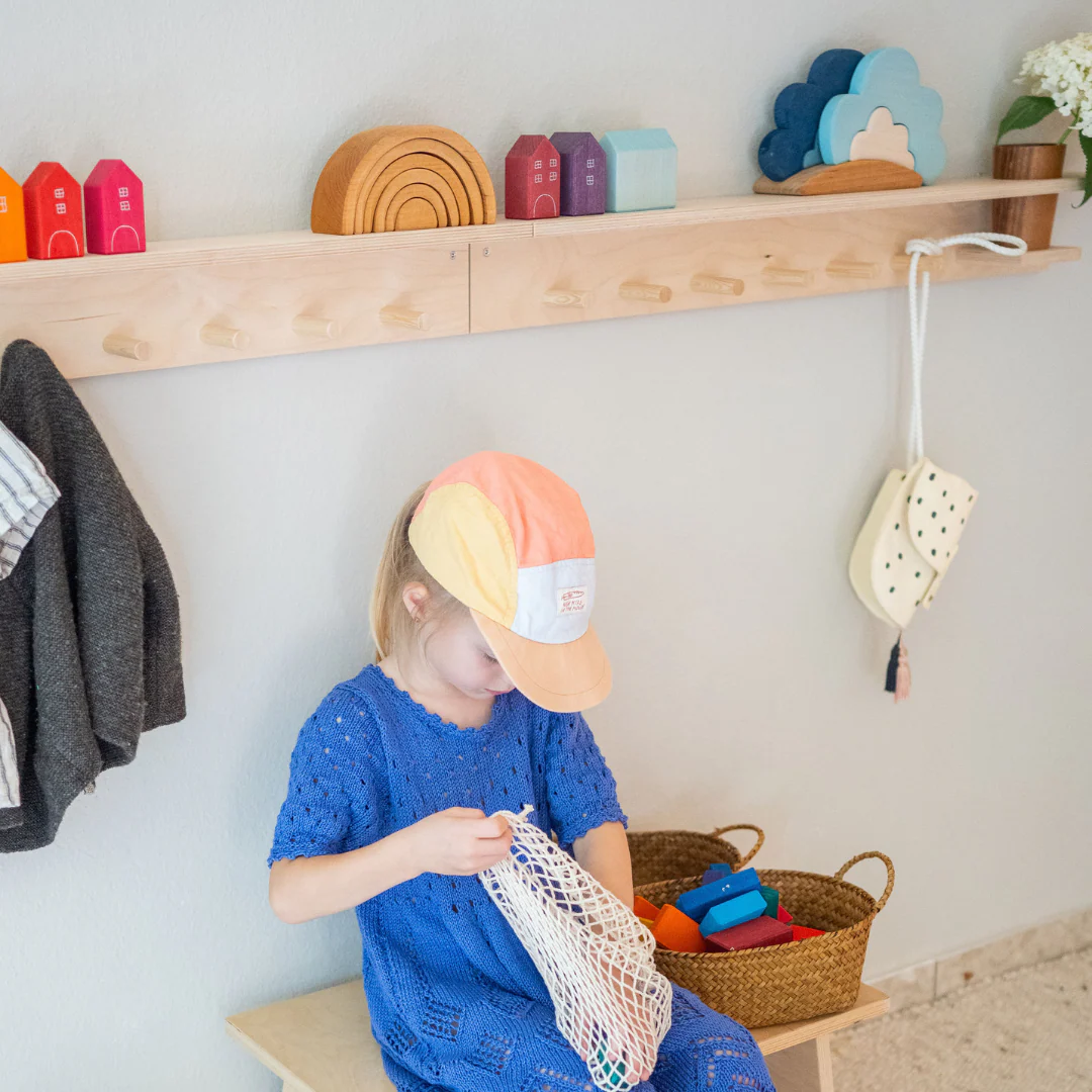 In der großen Variante hat es sechs Haken und über die gesamte Länge oben ein Brett mit einem runden Loch, um darin beispielsweise eine kleine Vase oder unseren AIKA Becher zu dekorieren.